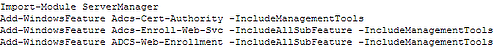 Within the video there is a Powershell script which is used to install the Certificate Service binaries – below you will see the script: