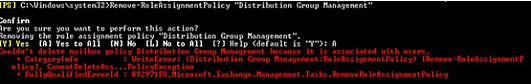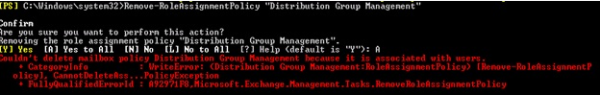 My next step was to remove my unused role assignment policy through Exchange Management Shell.